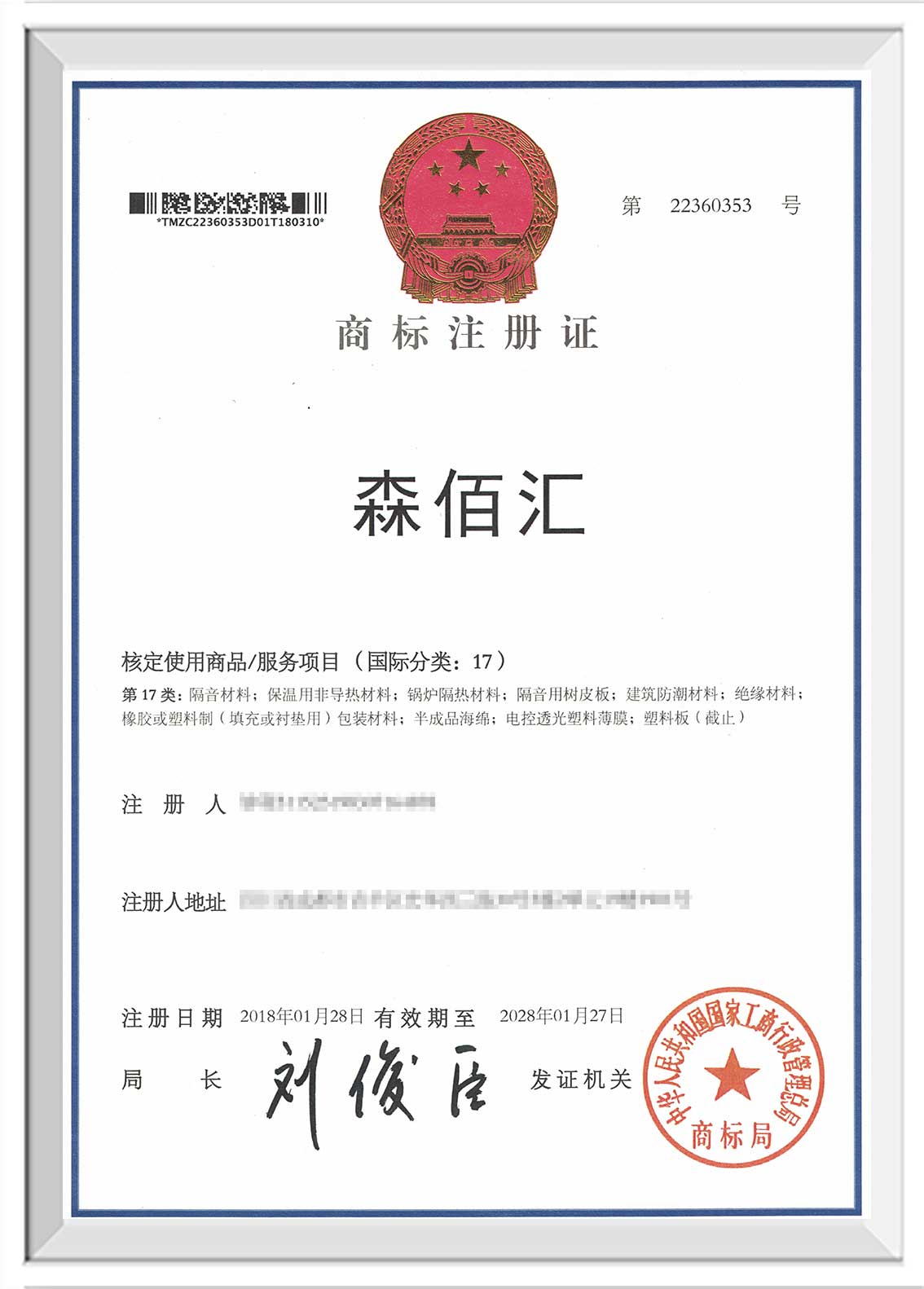桂林“森佰汇”商标证书下发至企业